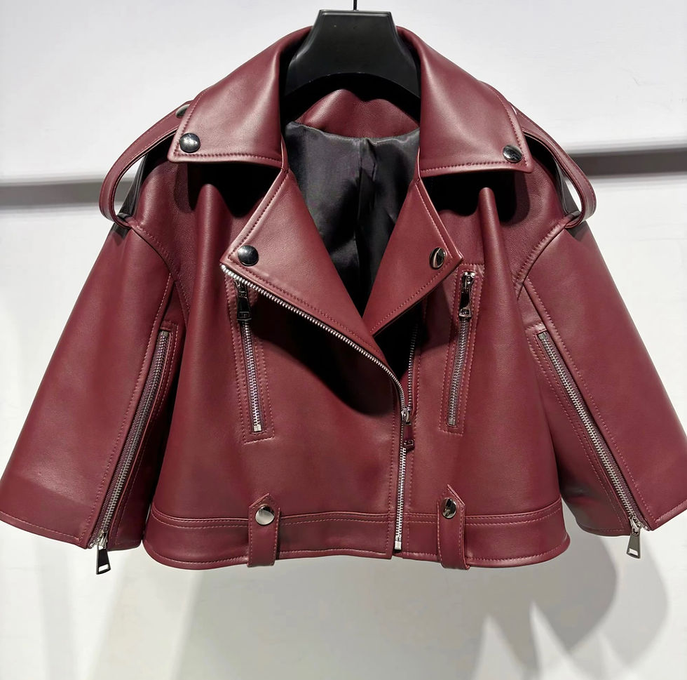 QUARTER SLEEVE CROPPED LEATHER BIKER